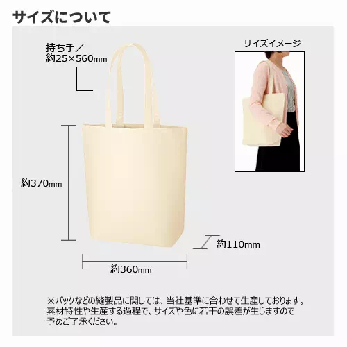 しっかりとした厚みのあるコットン生地のキャンバストートバッグです。