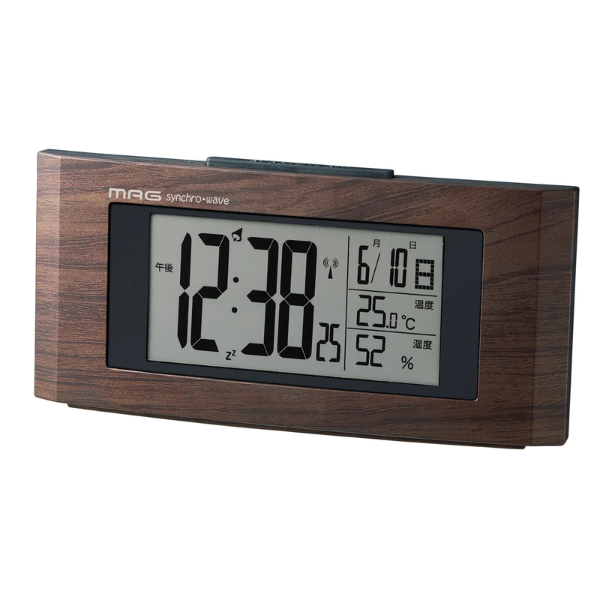 インテリアになじみやすく要望の多い木目調デザインの電波時計。