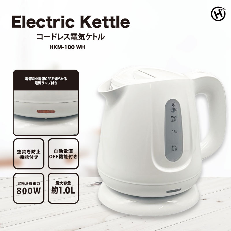 【K】コードレス電気ケトル1.0L ホワイト